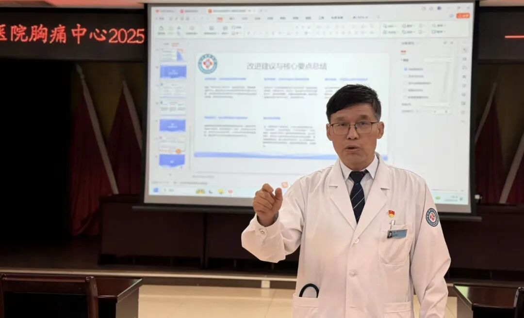 于伯泉副主任围绕我院2025年下半年胸痛中心数据进行质量分析,深入剖析了数据反映出的诊疗流程、协作配合等方面的薄弱环节,结合临床实际提出了针对性改进措施,明确了后续质量管控重点。